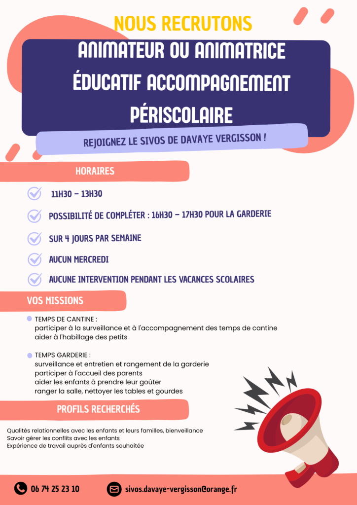 INFORMATION : LE SIVOS DAVAYE VERGISSON RECRUTE !